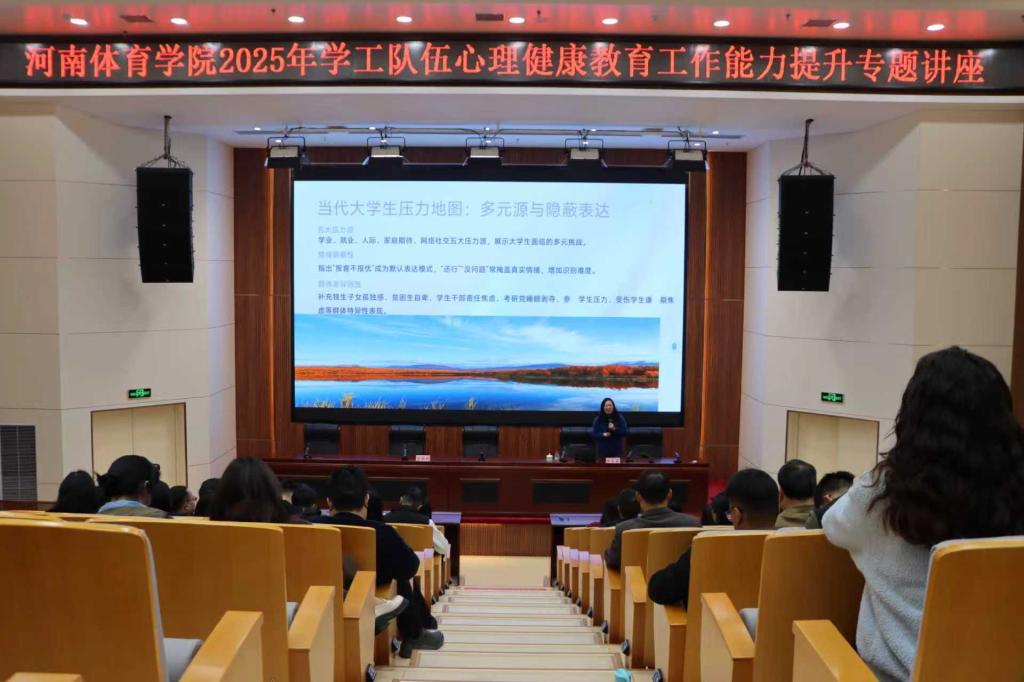 为进一步贯彻落实教育部等十七部门《全面加强和改进新时代学生心理健康工作专项行动计划(2023—2025年)》的文件精神,推进学校心理健康教育工作标准化建设,提升学工队伍心理健康教育工作能力,结合学校工作实际,于2025年11月12日上午在图文信息楼负一楼报告厅举办2025年学工队伍心理健康教育工作能力提升专题讲座。