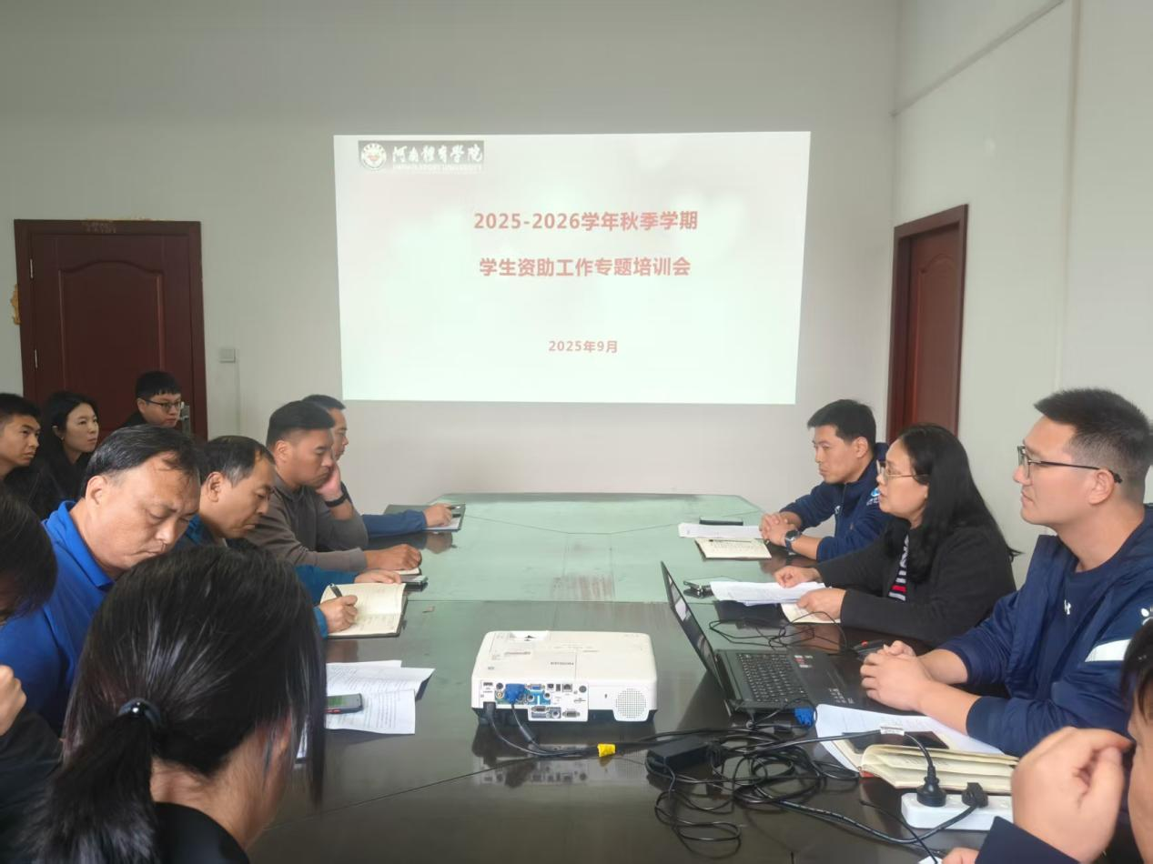 为全面提升学生资助工作水平,确保新学年各项资助政策精准高效落实,9月22日,我校在学生处会议室组织召开了2025-2026学年秋季学期学生资助工作专题培训会。学生处主要领导、各系副书记、学生资助管理中心工作人员以及全体辅导员参加会议。